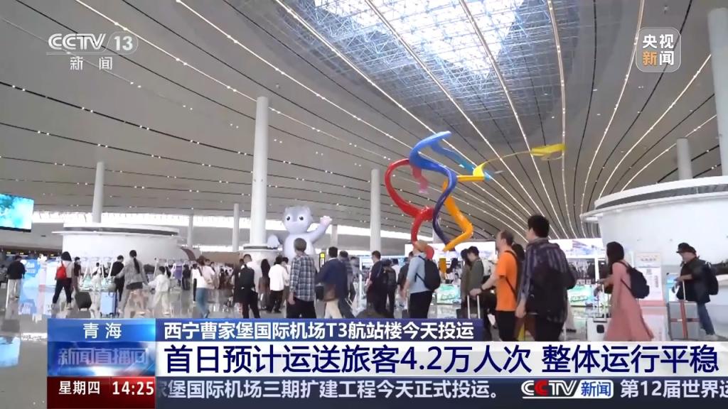 总台记者 崔建军:我现在就在西宁曹家堡国际机场T3航站楼的出发大厅。机场方面预测,T3航站楼启用第一天,将执行起降航班308架次,运送旅客数量约4.2万人次。自今天0时正式投运以来,目前整体的运行情况平稳。