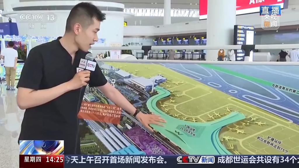 总台记者 崔建军:西宁曹家堡国际机场T3航站楼的建筑面积约15.8万平方米,是T1航站楼和T2航站楼总面积的3-4倍。来看这张示意图,绿色的区域是我们现在所在的T3航站楼,旁边这两栋建筑就是T1和T2航站楼了,对比可以直观地看出面积大了不少。T3航站楼旁的机场站坪也进行了扩建,机位总数增加到75个,扩建后的机场能够满足年旅客吞吐量达2100万人次,航班保障能力平均每天能够增加40架次以上,大幅提升了机场的综合运输能力。