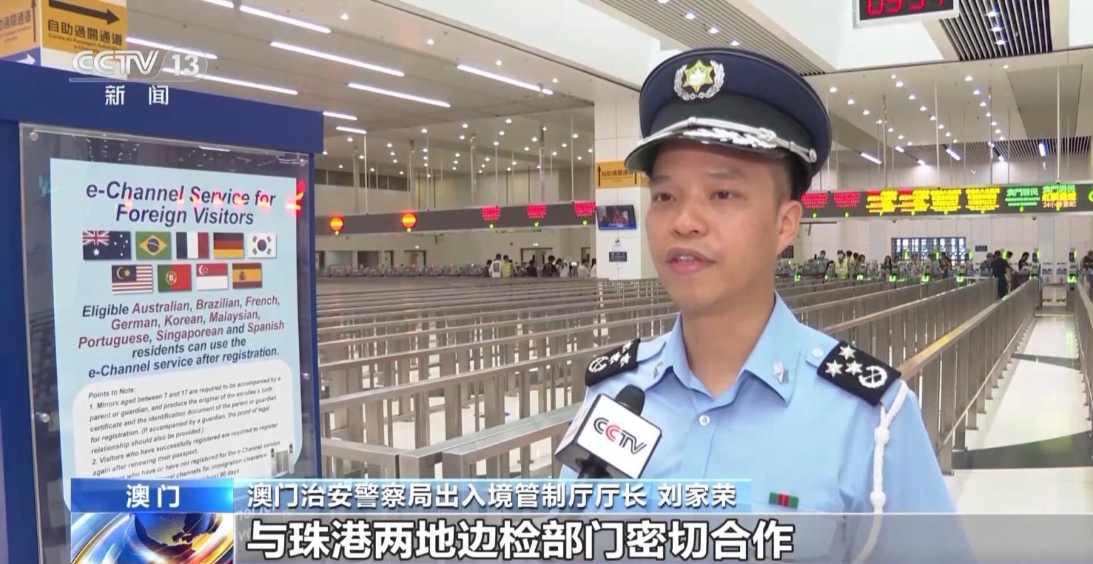 澳门治安警察局出入境管制厅厅长 刘家荣:澳门治安警察局除了与珠港两地边检部门密切合作、协同应对出入境高峰之外,还推出开放香港居民登记使用虹膜通关、新增多个国家免签入境以及扩展自助通关与随车过关适用对象等便利通关措施,持续优化旅客通关体验,更好地发挥澳门内外联通的作用,助力大湾区一体化融合发展。